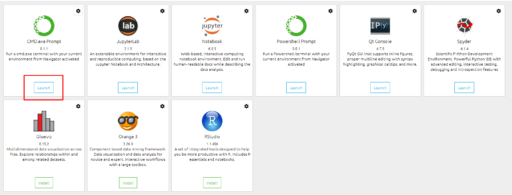 Ir a Anaconda y presionar en “Launch” en CMD.exe Prompt.