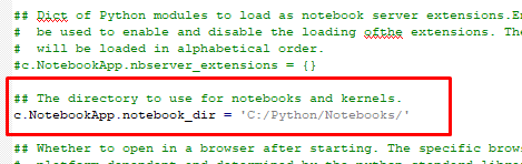 Agregaremos en las comillas el directorio seleccionado, incluyendo la ultima diagonal “/” (Cambiar “\” por “/”). Tambien eliminar el “#” inicial para activar la linea.